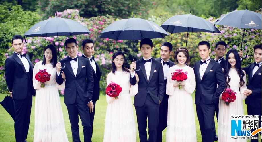 最强伴郎伴娘团的到来也为这场婚礼增添了色彩,由彭于晏、刘昊然、胡歌、马天宇组成的伴郎团统一的黑西服风度翩翩,谭维维、何泓姗、吕夏、娄艺潇组成的伴娘团身着特意设计的裸粉色长裙,在草地上与新郎袁弘纷纷撑伞合照,梦幻美好,文艺之余还不忘逗比。