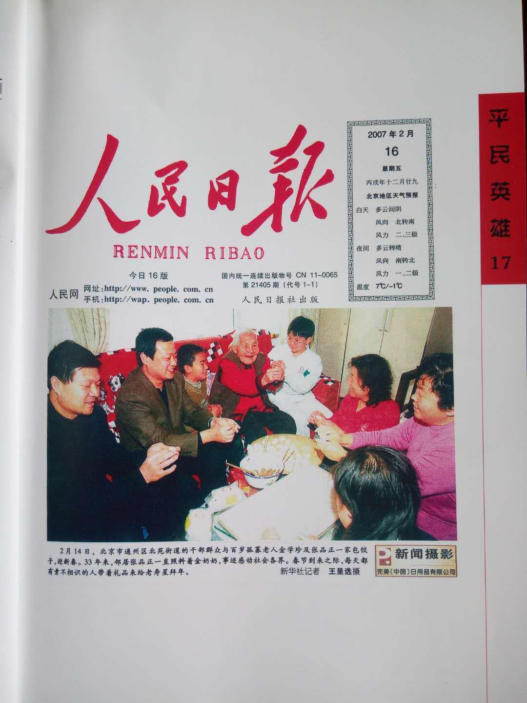 我说的故事很平常,但是,主人公做的很不平凡。她带着非亲非故的邻居奶奶出嫁,她像亲人一样照顾老人35年,没有房产、没有积蓄、没有退休金的老人被她伺候得笑逐颜开长命百岁。她的事迹上过新闻联播,她得到全国亿万人民的关注和赞美。她的精神感动邻居、感动读者,感动观众,无数人在她的影响下重拾雷锋精神。她就是通州区北苑街道普通市民张品正。