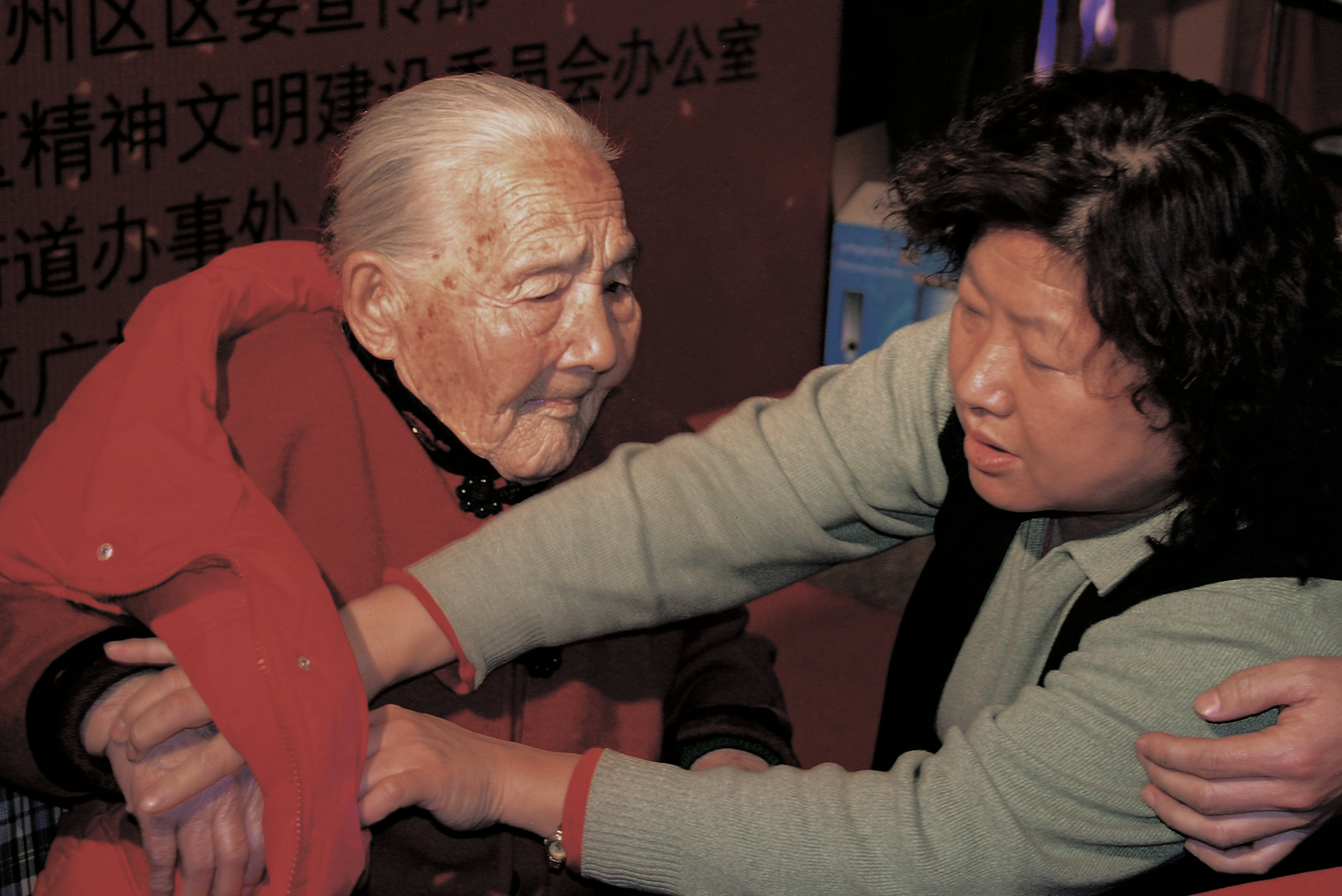 19岁那年,她走进了金奶奶的生活。开始隔三差五地来到奶奶家扫地洗衣服。1979年冬天,金奶奶高血压、心脏病复发,张品正带着奶奶去住院。医生摇头不收,安慰说:“能吃点啥就吃点啥吧!”张品正怕老人出事,索性搬到奶奶家,做饭洗碗削苹果,洗手洗脚擦身子,看病买药煎药。也许是真情感动了上仓,老人的病奇迹般地好了。金奶奶说:“造化呀,丫头跟我这孤老婆子睡一块,连亲闺女也做不到呀!”打那儿以后,张品正长期与金奶奶住在一起。修脚把脉测血压,按摩捶背揉穴位,张品正成了金奶奶的全科大夫。金奶奶开始精神起来,从头到脚像换了一个人似的。