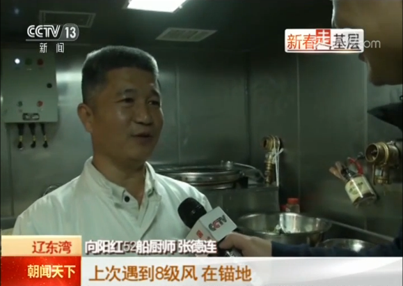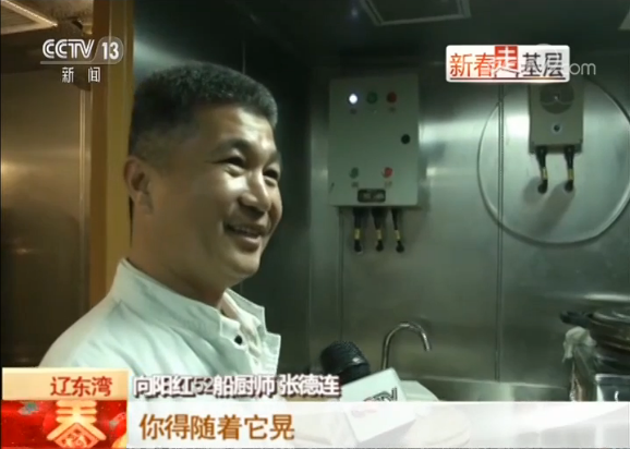 向阳红52船 厨师 张德连:油锅要是晃起来,你就得随着它晃,手腕子来回翻,得跟着浪走。上次遇到8级风,在锚地 人站在这里 (船)一晃,唰就过去了。