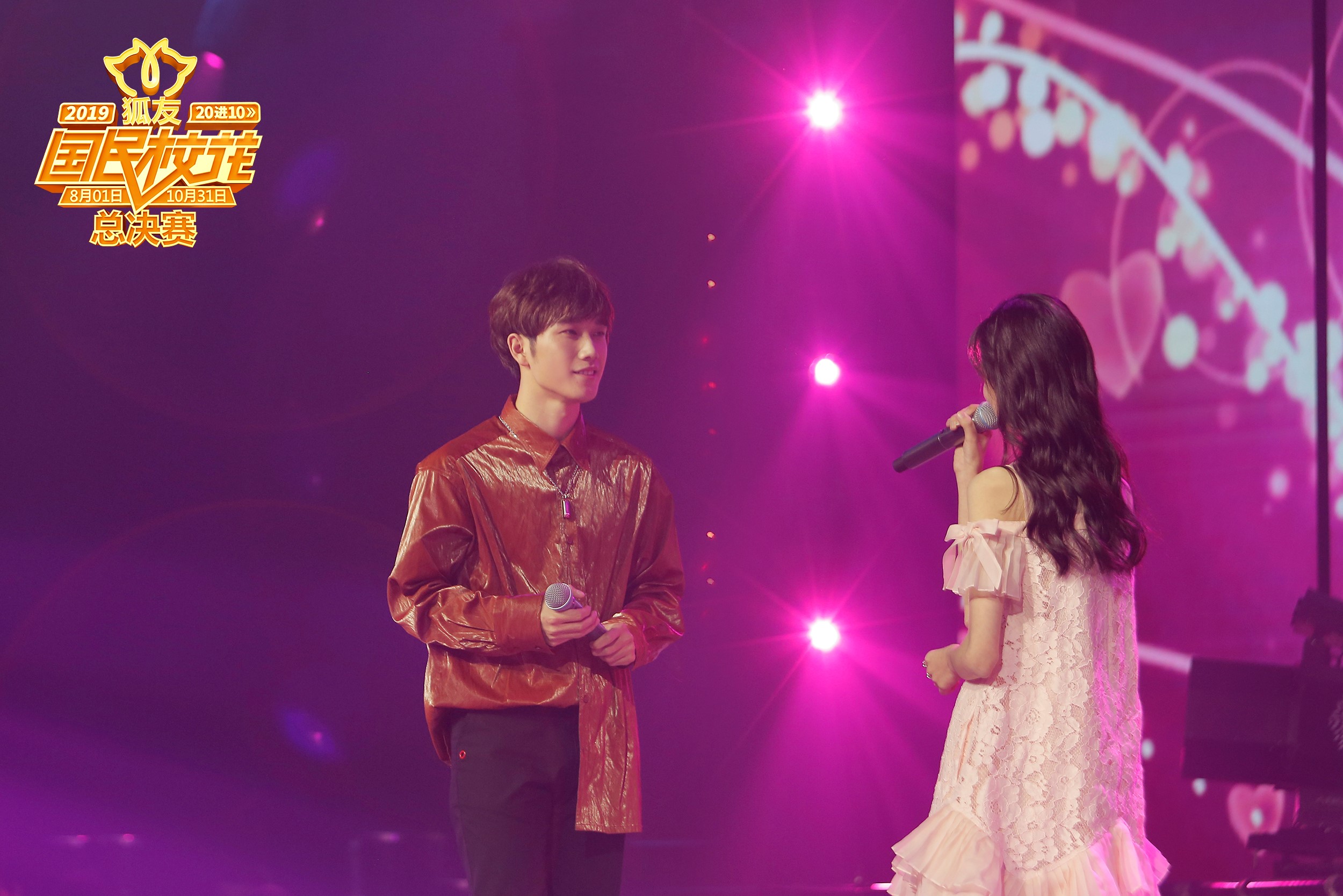 在第二轮比试之前,搜狐签约艺人徐沁和宋一雄演唱了《爱一点》,两人一个甜美,一个帅气,CP感十足。徐沁刚刚结束搜狐自制剧《奈何boss要娶我2》的拍摄,她还不忘给校花们鼓励:“放松心情,尽情享受舞台就好。”