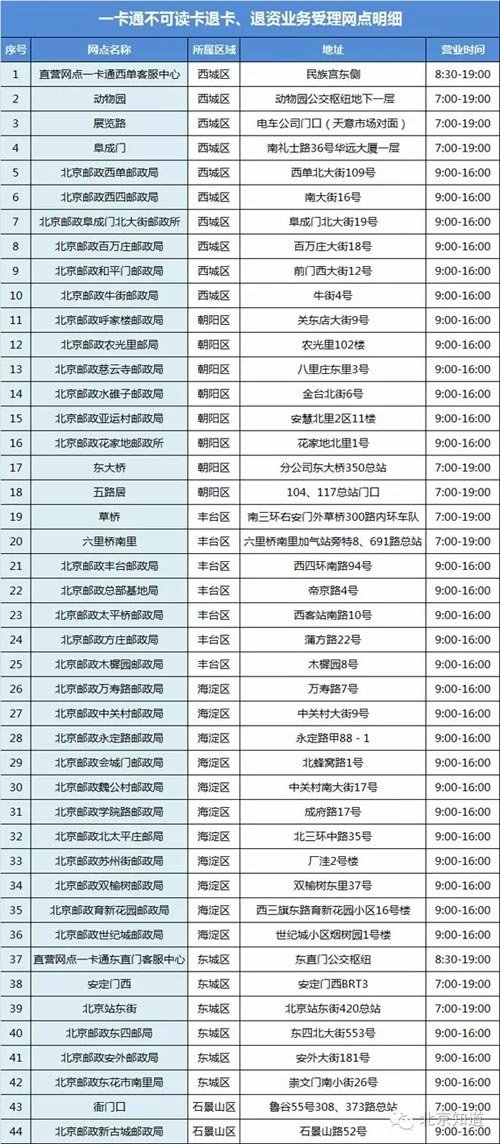 如果你手里的卡片不可读了,就要到指定的44个网点办理退卡业务。也就是下面这些