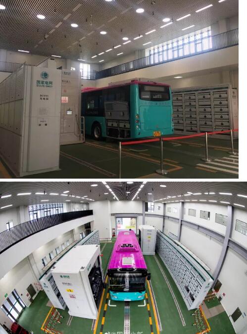 充换电站屋顶、墙面、车棚都装有光伏发电系统。全自动换电和快速充电服务还能保证自产自销,就算脱离大电网也能独立完成发电、充电和放电,是名副其实的“绿色”能量站。