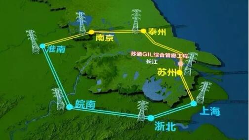 世界上电压等级最高、输送容量最大、技术水平最高的超长距离GIL创新工程——1000千伏苏通GIL综合管廊工程,隧道跨越长江南北,长达5468.5米,是特高压第一次穿越长江底部的“地下电网动脉”,也是华东特高压交流环网合环运行的“咽喉要道”和控制要塞。