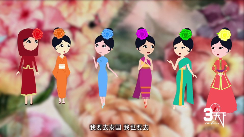 咦,是谁在聊天?原来是来自亚洲的六朵小花。多彩的泰国,浪漫的印度,温柔的日本,好客的哈萨克斯坦,活泼的伊朗,包容的中国。