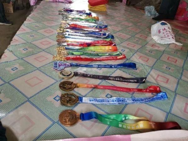 图为奚占玉家中的完赛奖牌。