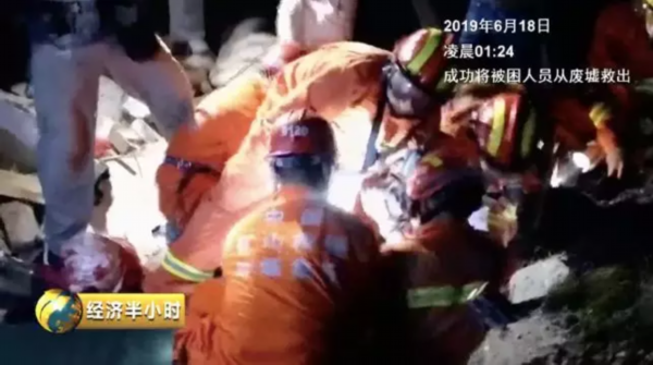在救援被困者的同时,余震还在持续着,何健被一次次拉出,又一次次爬进去,终于在将近十五六次的努力之后,凌晨4:19,被困人员终于成功获救,并被迅速安全转移到宜宾市第二人民医院。