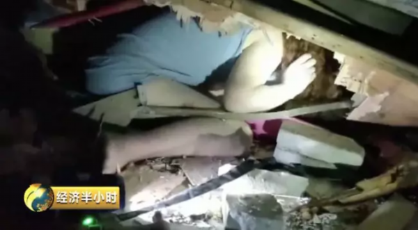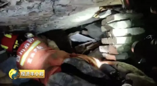 40厘米,是一个连翻身都难以实现的高度,凭借着坚定的救人信念,消防员何健一点一点往前挪动,终于在凌晨2点左右爬到被困者的身边,此时被困者已经被楼板压住超过2个小时,和救援队员们交流的声音越来越小。