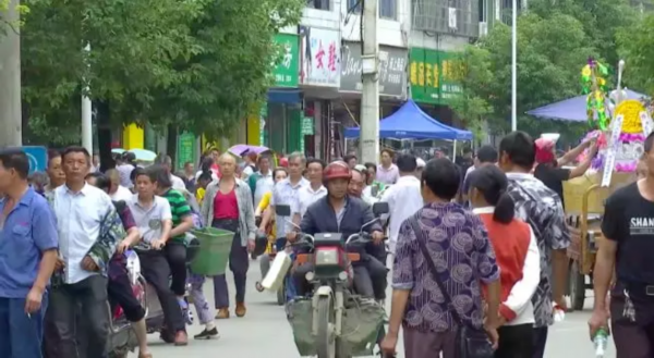 赶集对四川的很多城镇来说都是一个重要的日子,尽管街面上还有不少临街的店面,由于墙体破裂成为危房,不能营业。但是这并不妨碍大家把摊位摆到路边的街面上,生意要做,日子也要过。