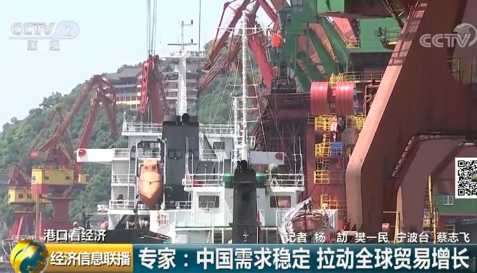在世界贸易中,有接近一半的铁矿石、超过三分之一的煤炭,还有大量的非金属矿石、农产品等等都从世界各地通过航运来到中国。中国稳定的需求正拉动着全球航运、世界贸易稳中向好。