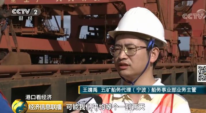 在宁波舟山港的矿石码头,王靖禹正在和工作人员紧密协商,他的船靠港的时间又要推迟了。